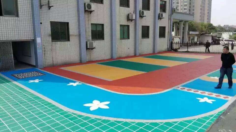2.彩砂地坪施工方法:將材料按配合比充分?jǐn)嚢瑁褂霉瓮抗に嚪磸?fù)刮涂。使環(huán)氧高滲透底漆封閉并滲透到混凝土基層,確保彩砂地坪與混凝土結(jié)合,提高附著力的持久性。