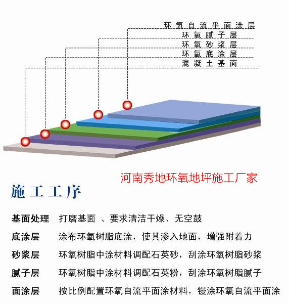 1、環氧自流平厚度在1.5mm左右,一道底漆,一道無溶劑中涂砂漿,一遍膩子,一遍環氧自流平面漆(刮涂一道,鏝涂一道);報價42元左右。